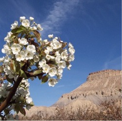 St Francis Farm, April 9, 2002, Palisade, Colorado. Witnessing our first full spring of blossoms as orchardists. Cherries, apricots, pears, plums. Bees yet to kiss blossoms. Bushels yet to be bountiful. Anticipation. Spring. Nostalgia for eight years past. Before time passed. Happy memories. Mind’s eye smelling blossoms.